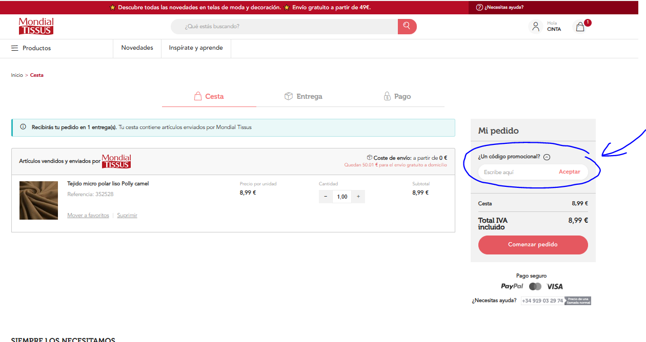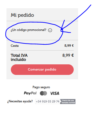 Primero de todo dirigete a tu Cesta y haz clic en ¿Un código promocional?